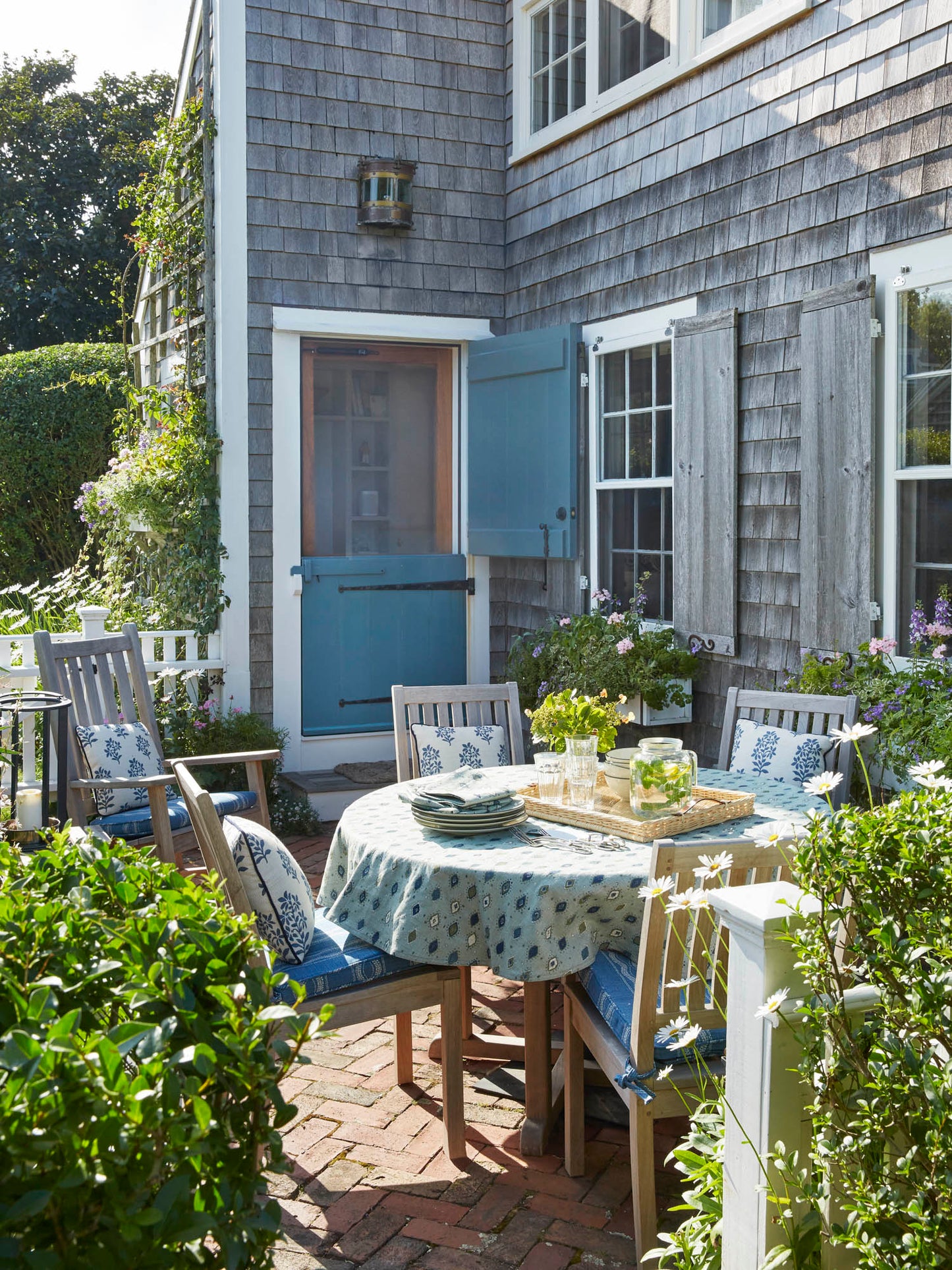 Being a STEM teacher isn’t easy, but it does come with a perk in Greg Dunbar’s case: a two-month summer vacation that allows him and his partner, Glenn Hinderstein, to leave their Los Angeles home every June and spend the season in Nantucket. The couple met on the island in 2015; Dunbar has been visiting the New England locale since he was a child, and Hinderstein, an avid sailor, spent many years on his boat in the area. After two summers spent living on Hinderstein’s sailboat, however, Dunbar craved solid ground again. They traded their sea legs for a small rose-covered, shingled cottage in Sconsett.