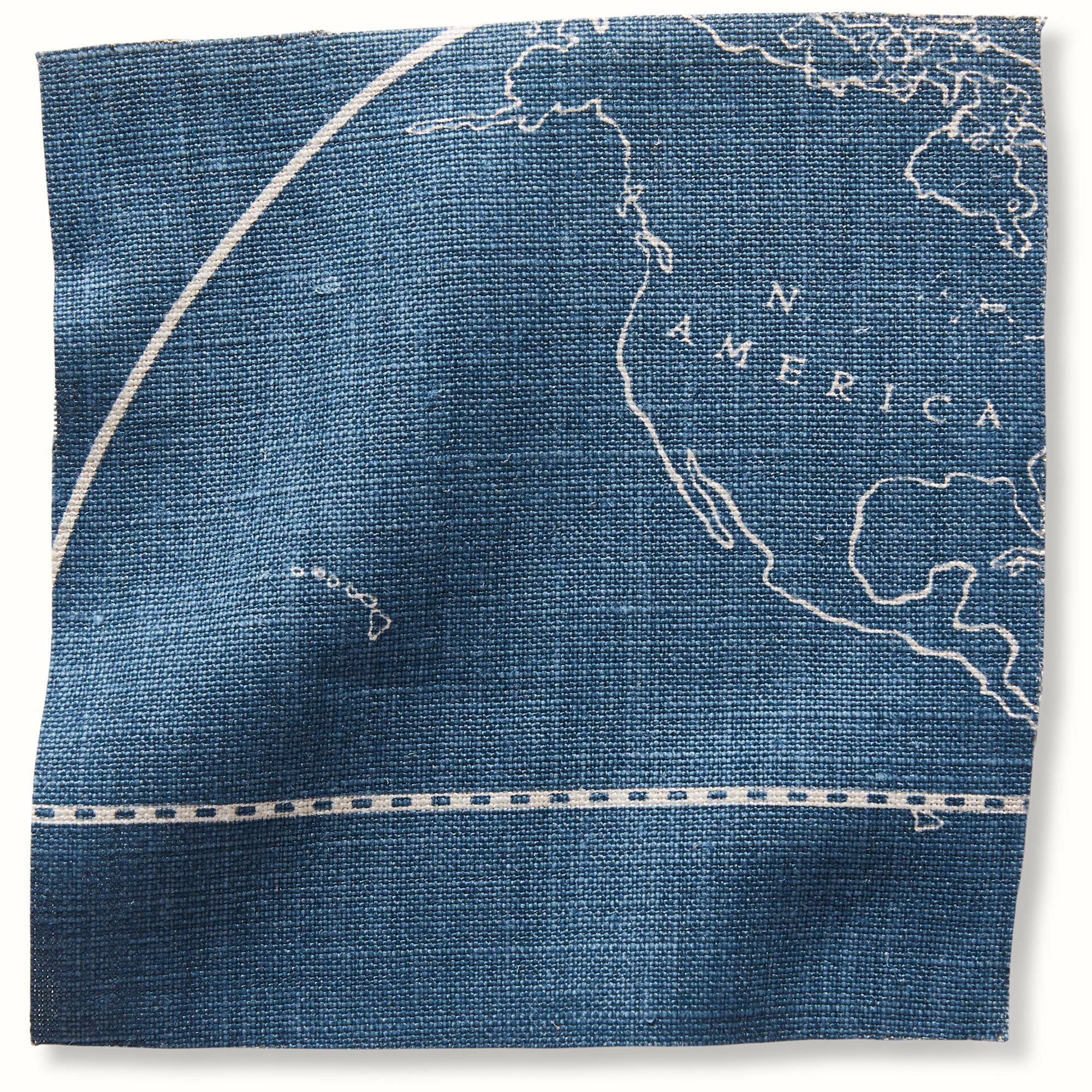 Inspired by a vintage globe, this textile is a natural for libraries, kids’ rooms, studies, and offices.