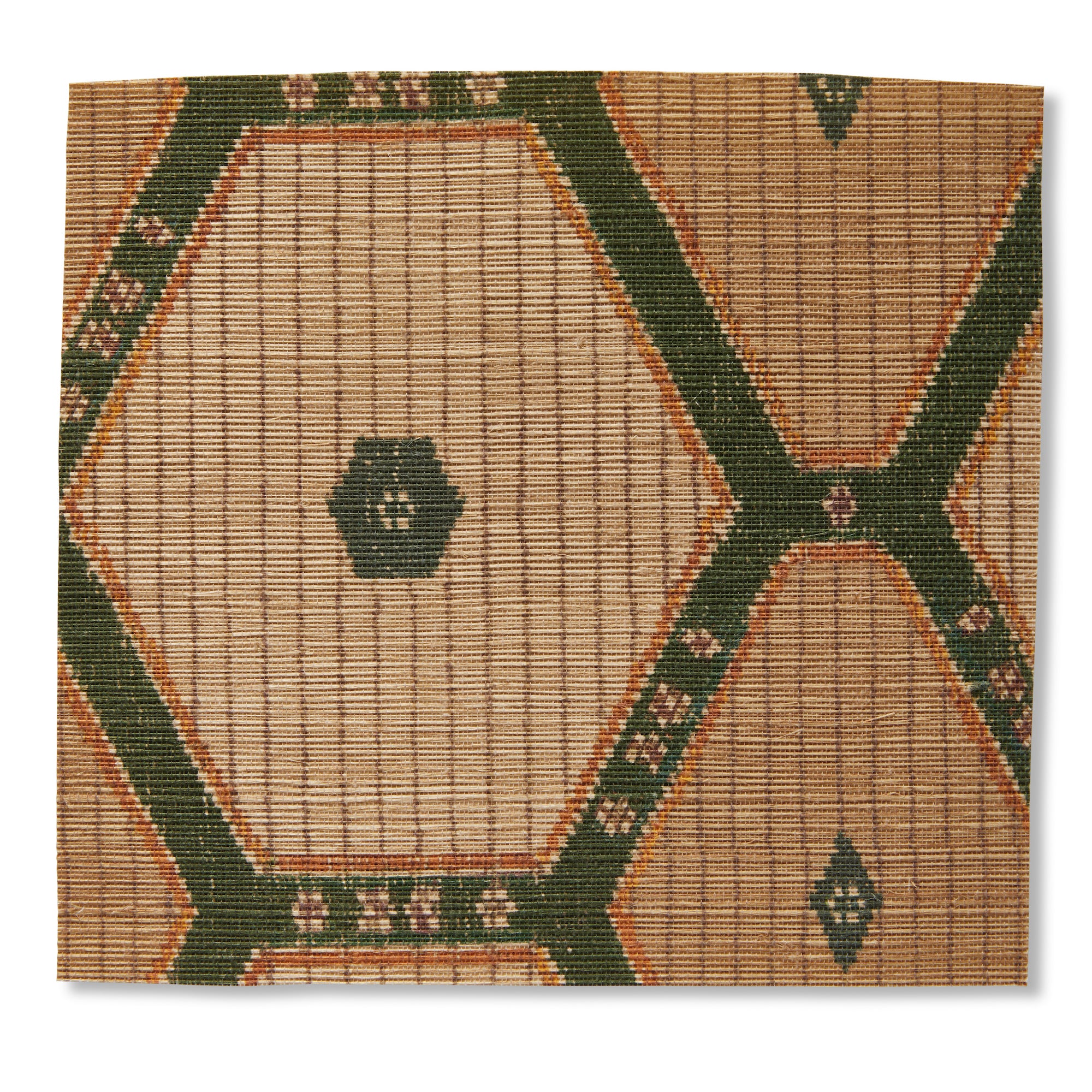 A rich, moody geometric printed on grasscloth in three colorways. Inspired by Tuareg reed rugs.
