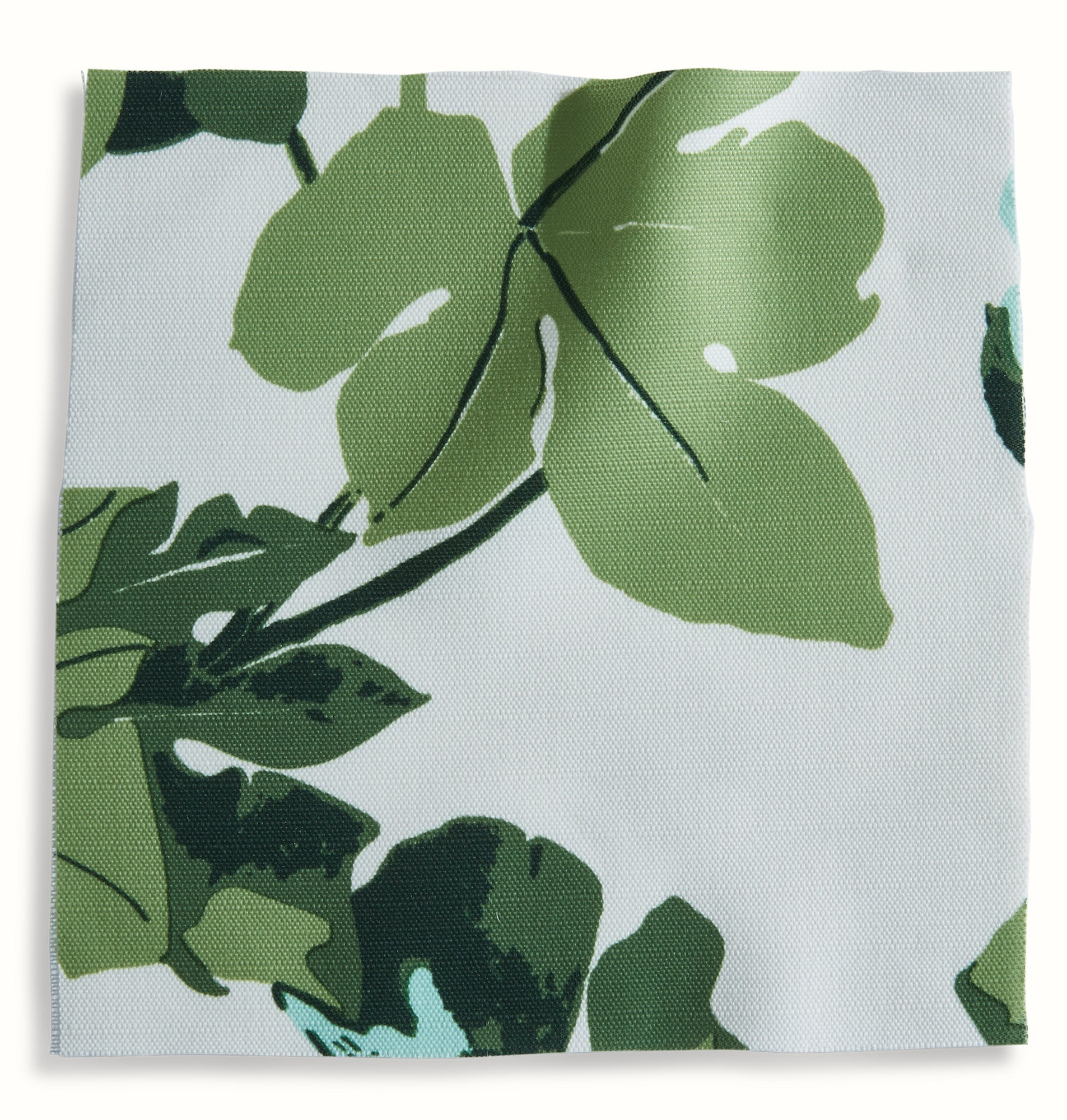 Our best-selling fabric, Fig Leaf was created by Peter with the memories of his childhood summers spent in Spain. There, fig groves surrounded him and his nearest neighbor, Salvador Dali, whose home was also an inspiration. Our outdoor prints are soil-resistant, oil, and water repellent with Teflon finishing.